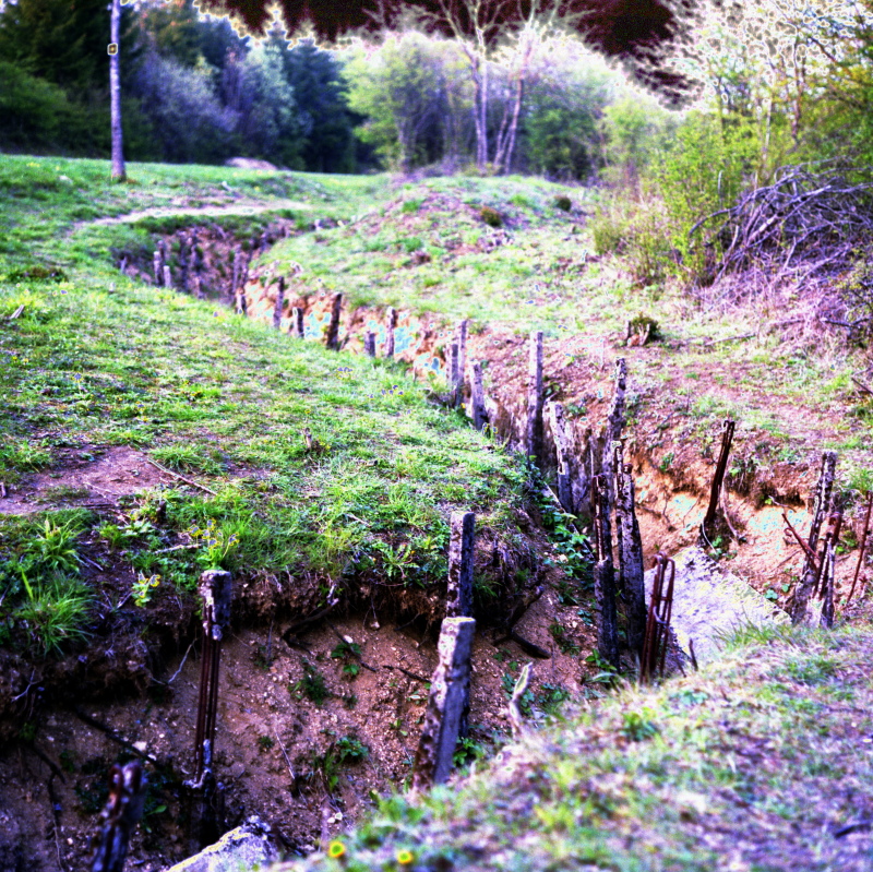![]() Laufgraben bei Verdun. Zwischen dem Fort Souville und den "vier Schornsteinen" gelegen. Frühjahr 1991 |