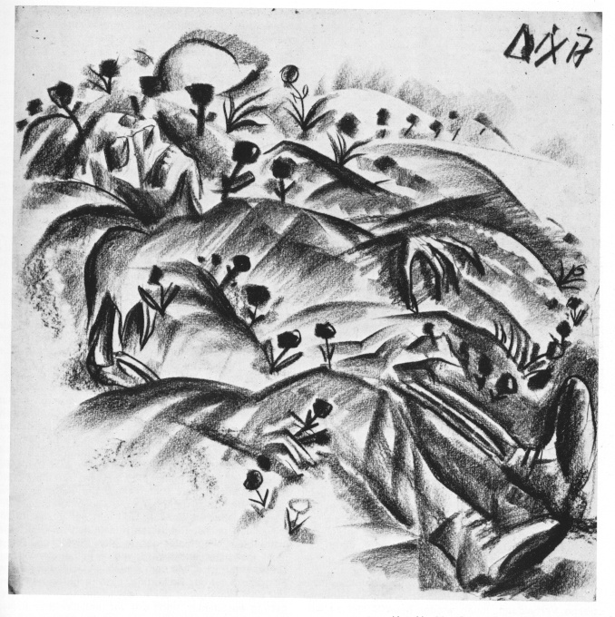 (toter Soldat ) 1917, schwarze kreide ; 41*39,5 cm